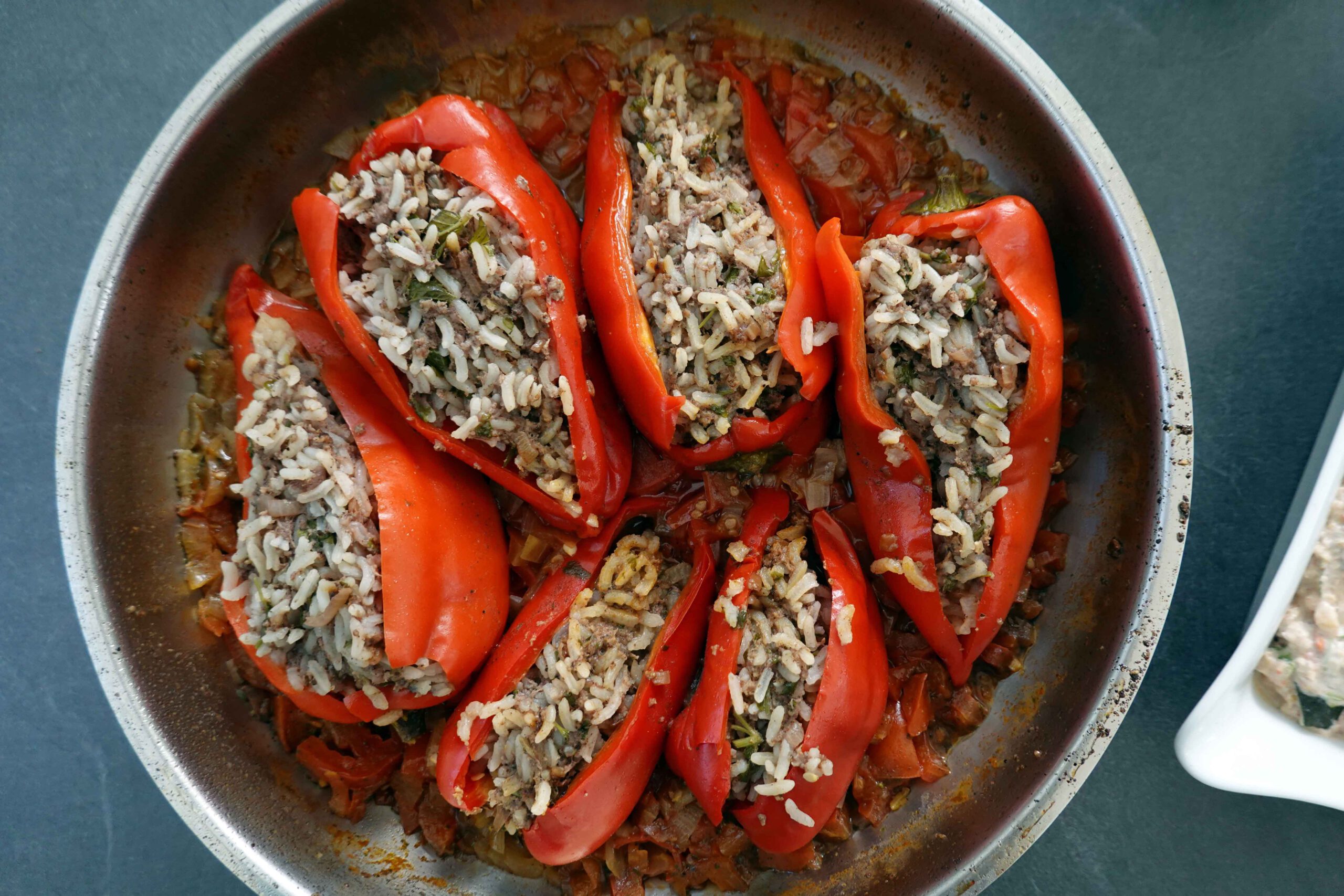 Die ersten beiden Fragen lauten meistens: Muss es Spitzpaprika sein? Muss es Lammhackfleisch sein? Nein muss es nicht, aber: Im Spitzpaprika sind deutlich weniger Kerne. So ist es auch einfacher ihn für die Füllung vorzubereiten. Lammhackfleisch gibt es meistens nicht um die Ecke. Wir haben aber die Erfahrung gemacht, mit gutem Rinderhackfleisch schmeckt es genauso gut.