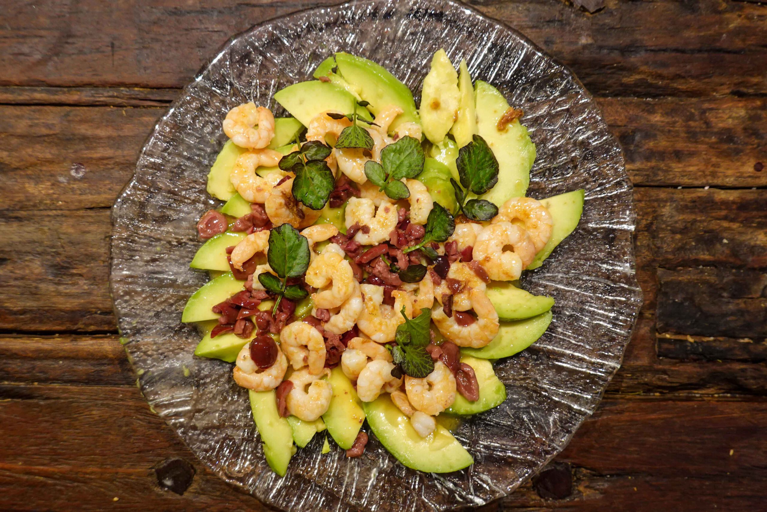 Dieser Klassiker von Uri Buri besticht durch die schnelle Zubereitung und dem tollen Geschmack. Wir nehmen immer gerne etwas mehr Avocado und mehr Oliven und verwenden Tiger Prawns, wenn wir welche bekommen. Seit der Entdeckung dieses Gerichts haben wir auf jeden Fall immer was Garnelenartiges in der Tiefkühltruhe, weil es eben ein ganz einfaches, aber wunderbares Gericht ist.