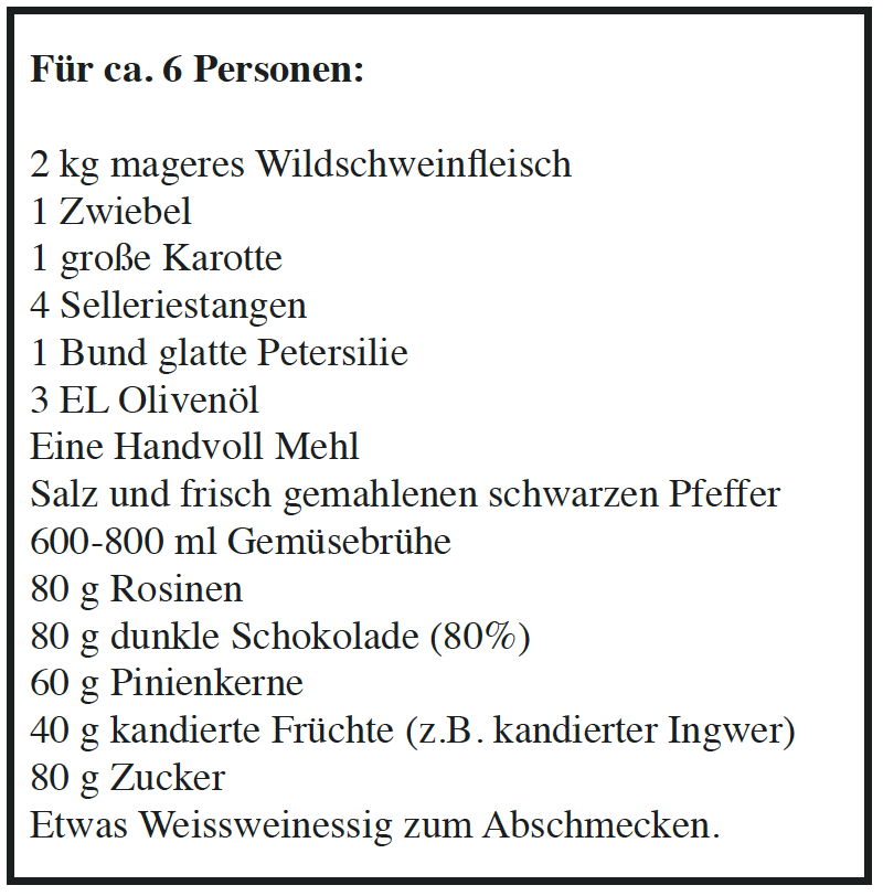 Das Wildschwein passt einfach zu einem Weissbrot oder einer Focaccia.