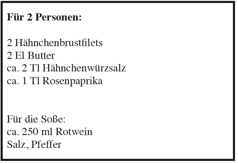 Den Rotwein in der Pfanne aufkochen und die Krusten mit einem Holzlöffel lösen. Ständig rühren und etwas weiter einkochen, als die Konsistenz der Soße gewünscht ist (gegebenenfalls Soßenbinder oder eine Mehlschwitze unterrühren).
