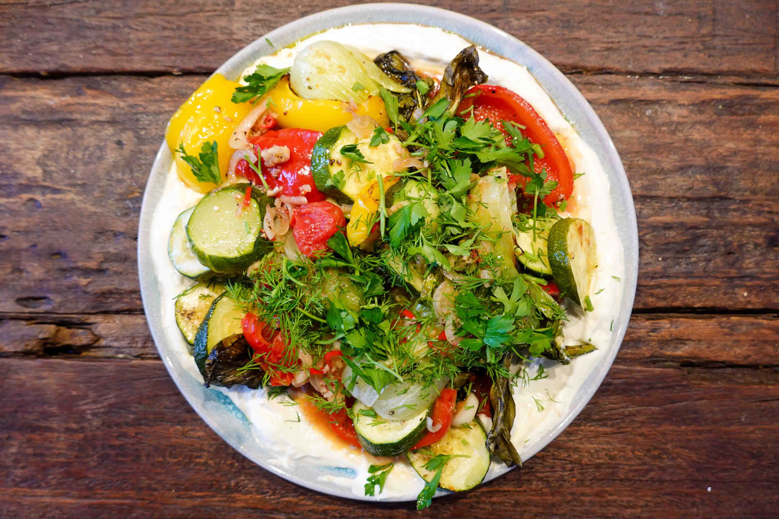 Geröstetes Gemüse auf Joghurt