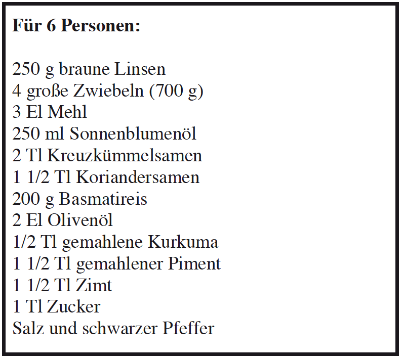 Wir haben zum ersten Mal in einem Kochbuch von Ottolenghi von diesem Gericht gelesen. Egal wo wir dann noch einmal darauf gestoßen sind: Alle Autoren waren voll des Lobes über Mejadra. Als wir es dann nachgekocht haben, mussten wir uns der allgemeinen Meinung anschließen: Es ist eines unserer Lieblingsessen.