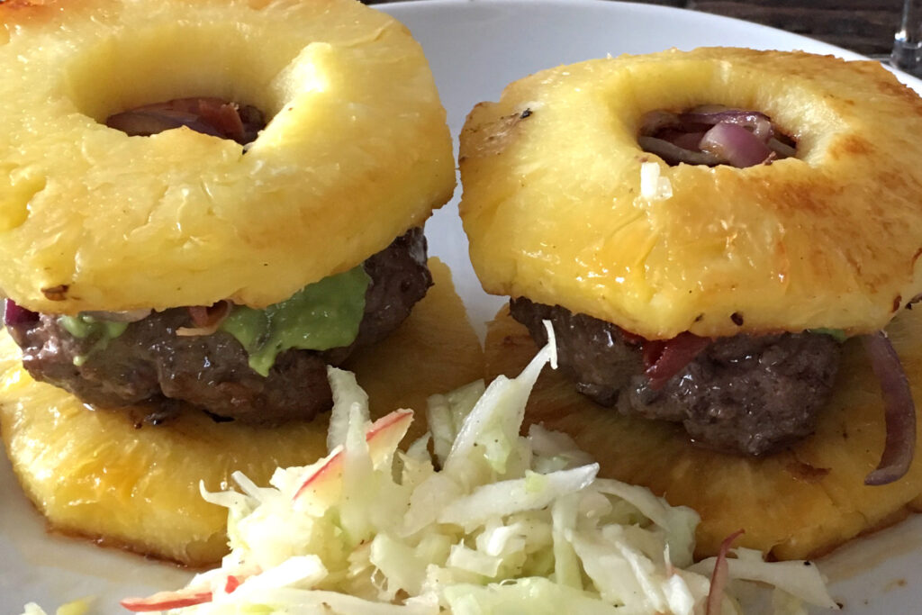 Die Menge an Rinderhack unterscheidet sich nicht vom Burger 1.1. Eine mittlere Ananas reicht für vier Burger locker, wenn man die Scheiben etwas dünner schneidet. Allerdings braucht es noch ein paar „Plus“ damit alle satt werden.